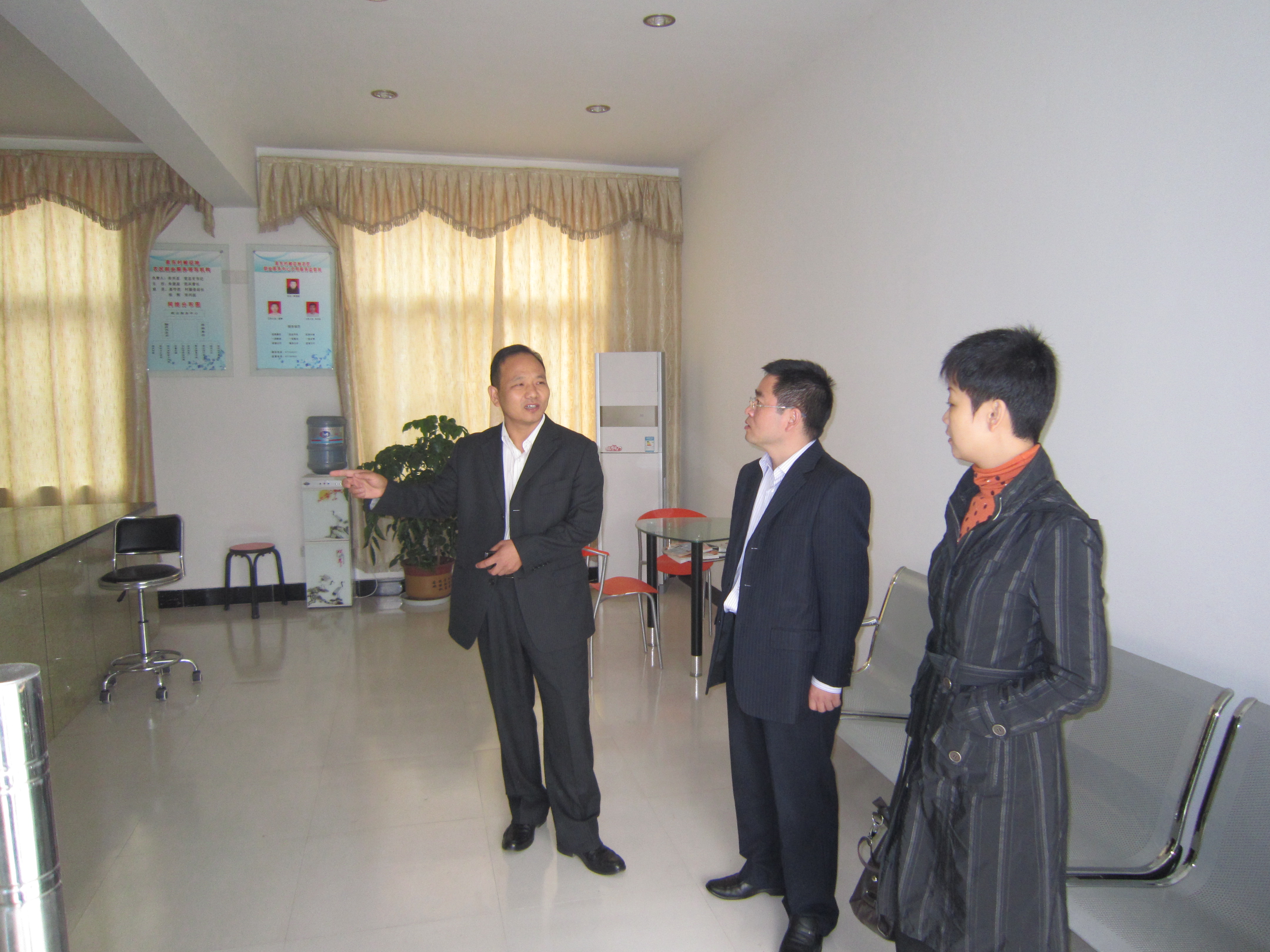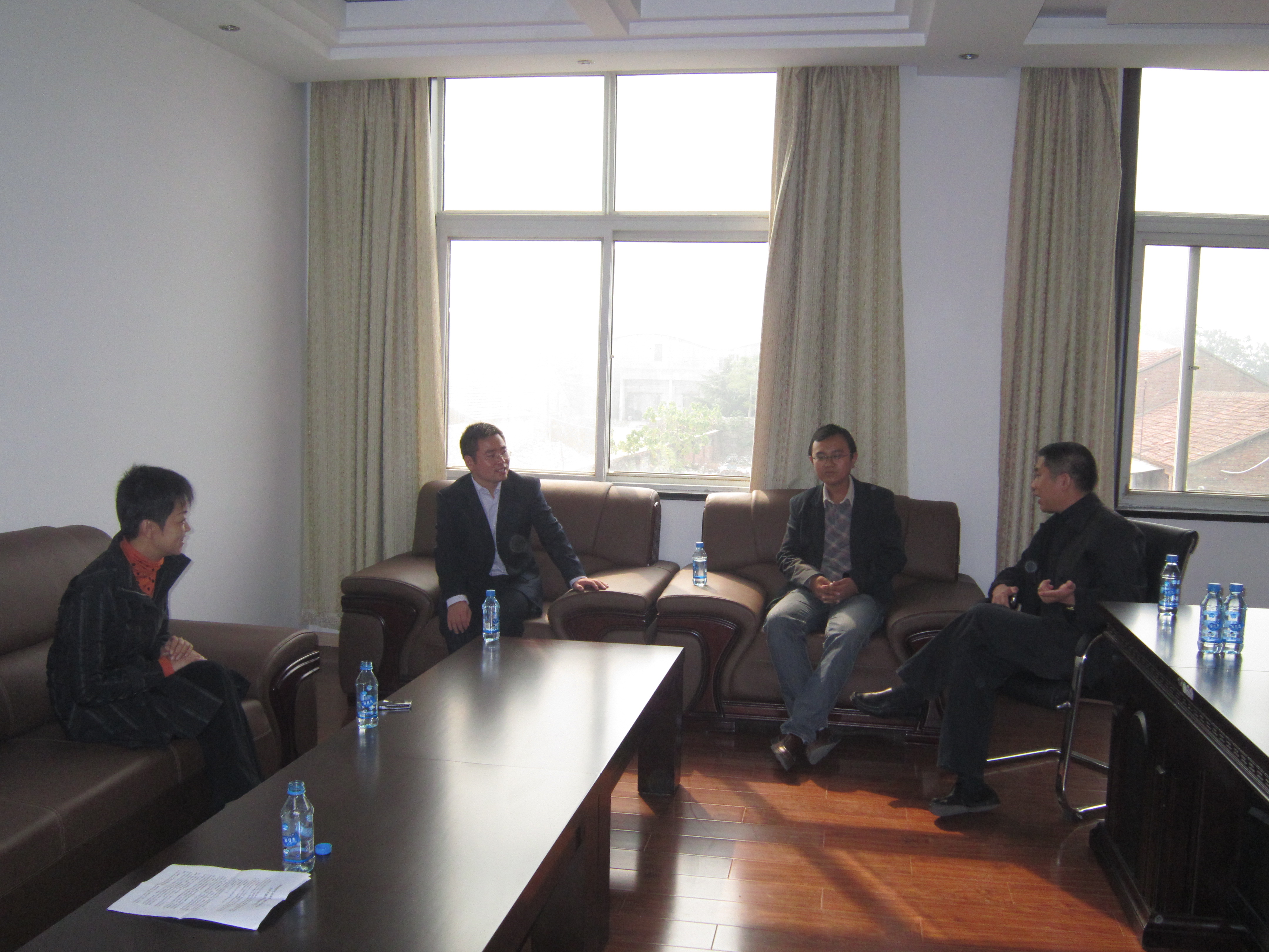 10月14日,公司党总支书记梁惠、党总支副书记葛志亮、院学工办主任史丽君、专职辅导员李彦江一行四人到徐州市贾汪区贾汪镇调研“创先争优”活动,并就公司党总支与泉东村党总支“结对共建”事宜与贾汪镇党委书记韩振磊、党委副书记张光新、副镇长张弛和泉东村党总支书记朱兴亚等进行了深入交流,双方就“创先争优”活动、结对共建、农村劳动力培训、主题实践活动、实习实践基地建设等有关方面的工作达成了初步意向,并就结对共建的具体内容和实施步骤提出了进一步的构想。