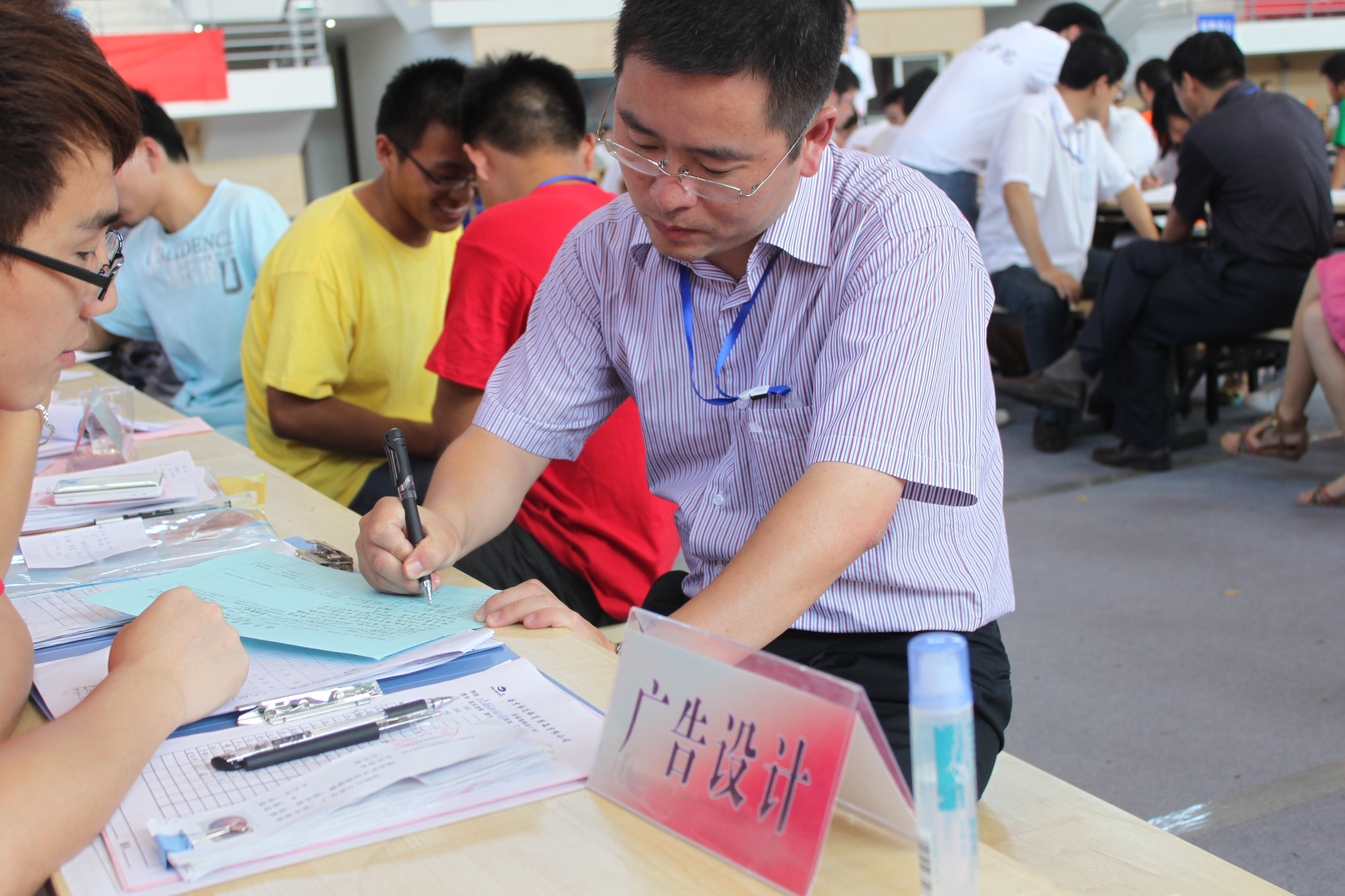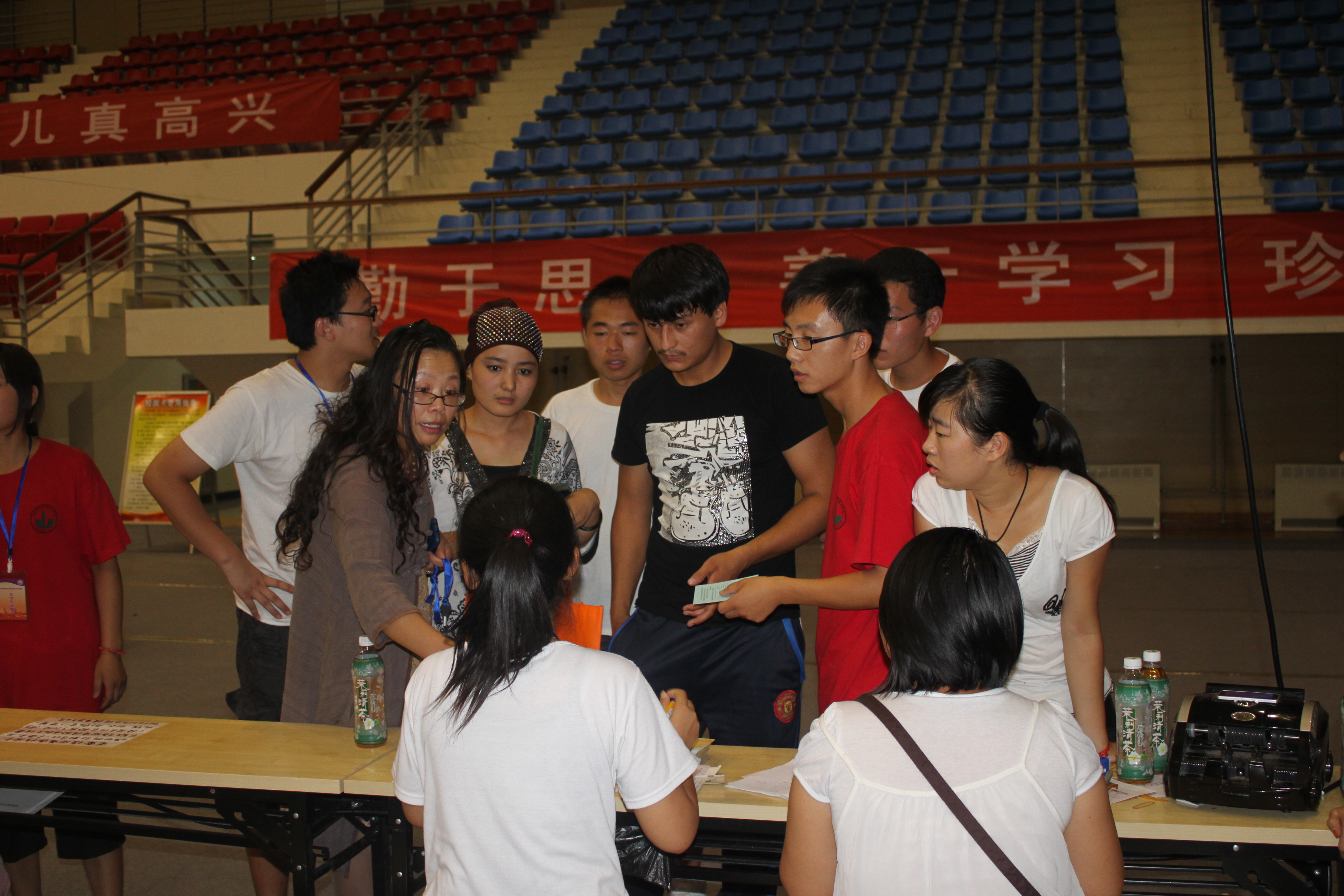 场内,新同学认真填写基本信息登记表