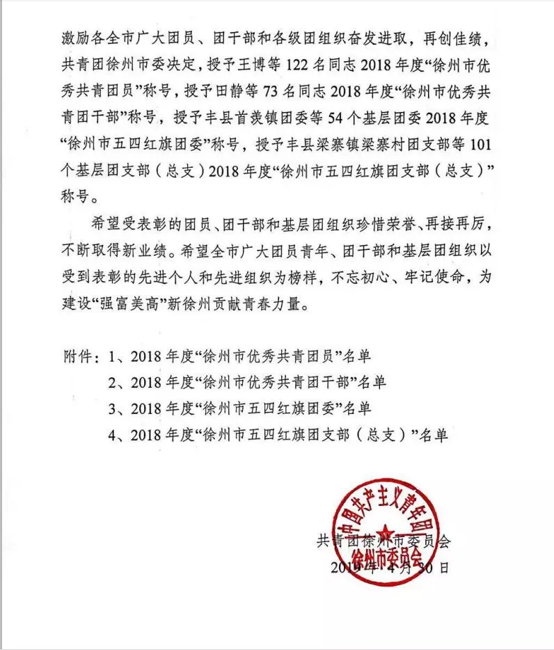 近日,从共青团徐州市委获悉,公司团委荣获2018年度“徐州市五四红旗团委”荣誉称号。