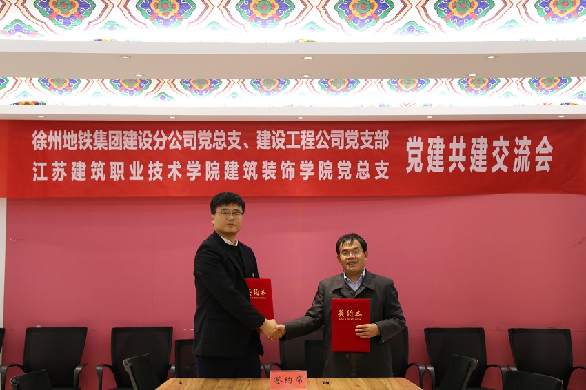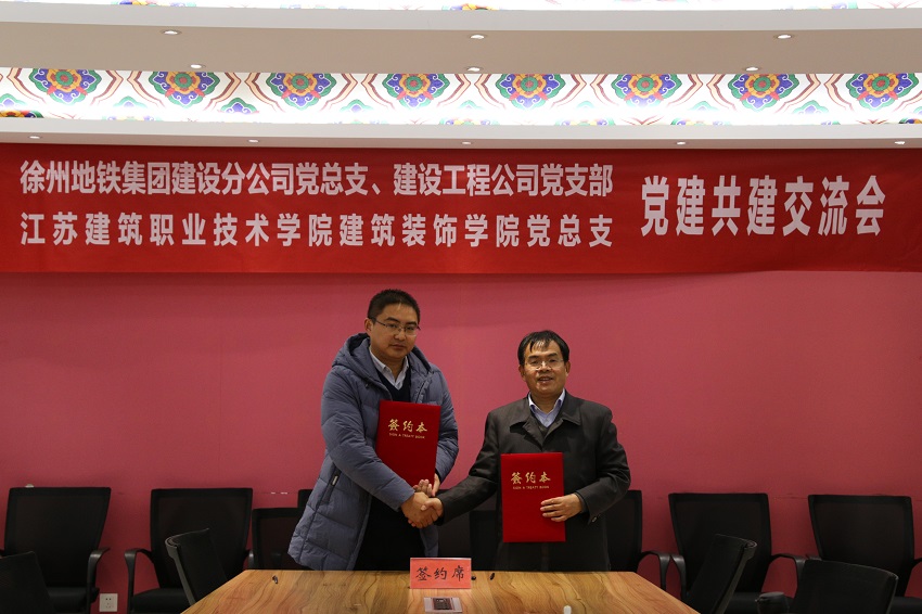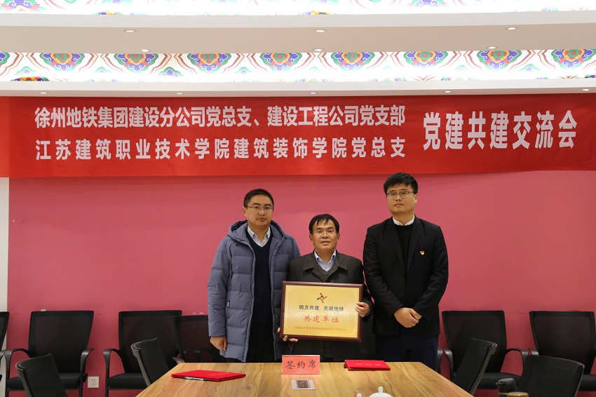 党建交流中,院企双方在党建互促、资源共享、人才共育、帮扶互助、发展共赢等5个方面的达成合作共识,签订了《校企党建共建协议》。徐州地铁集团向公司赠送“四方共建 美丽地铁”牌匾。