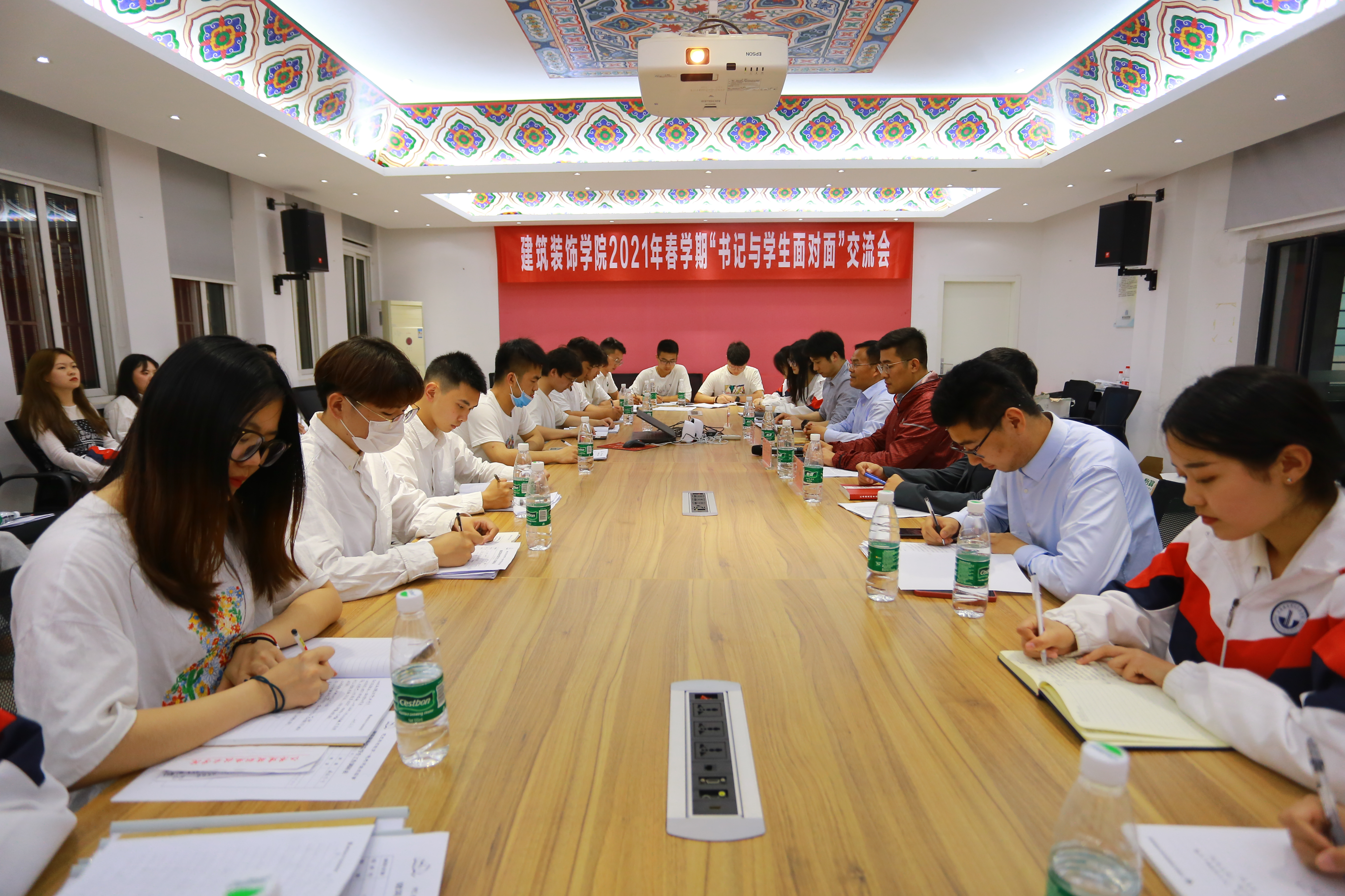 与会领导老师与25名来自不同年级、不同专业的员工代表围坐在一起,认真倾听员工心声、了解员工困惑、解决员工困难。交流会持续了两个多小时,在欢快愉悦的对话氛围中,同学们敞开心扉,畅所欲言,坦诚交流。