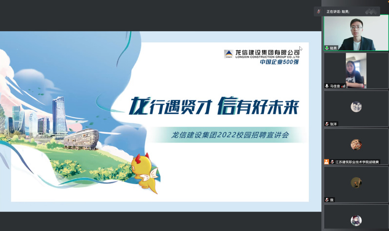 为了更好促进专转本毕业生的就业工作5月23日15:00太阳集团122cc开展了第六期访企拓岗专转本员工线上专场招聘活动,此次招聘的企业是龙信集团。太阳集团122cc经理沈士德教授,装饰公司党总支书记娄志刚、就业辅导员胡晓爽参加了此次招聘会。