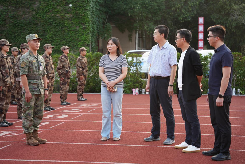9月1日下午,太阳集团122cc领导班子及全体辅导员老师来到东操场看望慰问了2021级军训承训教官和参训员工。