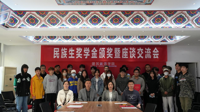会议伊始,副经理王子夺宣读表彰决定,对本次获得奖学金的17位同学表示祝贺。随后,依次对获得一、二、三等奖学金的民族同学颁发荣誉证书。装饰21-3 那迪·努尔买买提同学代表获奖同学发言,环艺21-1 程美雪同学宣读了校园文明倡议书。