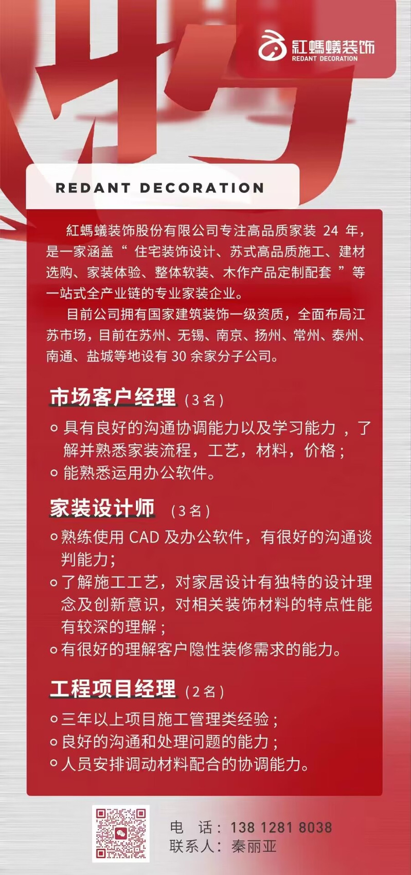 招聘启事二十一 | 红蚂蚁装饰
