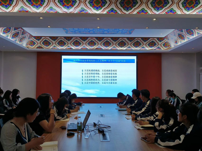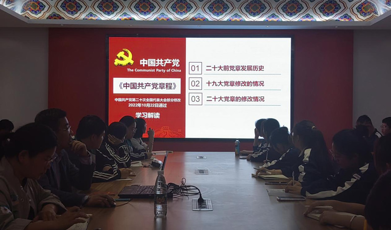 袁祯老师语言精炼、讲述生动、主题鲜明,既带领大家学习了党的二十大内容又将一些内容进行了拓展延伸,非常精彩。她强调最为新时代青年要认真学习贯彻党的二十大精神,心怀祖国、热爱人民,将个人发展与国家和时代的发展相结合,要不断学习理论、坚定理想信念,要发扬斗争精神、勇于实践创新,做有理想、敢担当、能吃苦、肯奋斗的新时代好青年。为全面建设社会主义现代化国家、全面推进中华民族伟大复兴贡献青春力量。