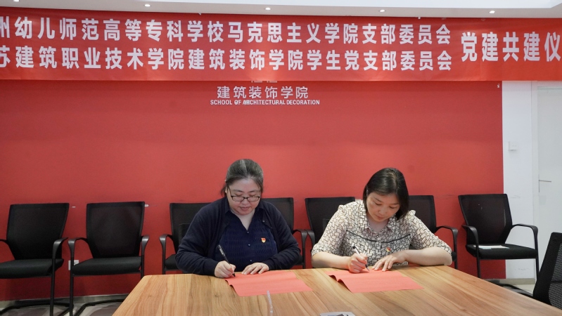 随后,建筑装饰公司党总支副书记刘爱萍就新时代全国第三批样板党支部建设情况向与会人员做汇报,徐州幼儿师范高等专科公司马克思主义公司党支部副书记刘静汇报公司党建工作情况。双方立足自身专业特色,在组织建设、理论宣讲、社区服务、民族生教育管理等方面交换了意见并签订了党建共建协议。