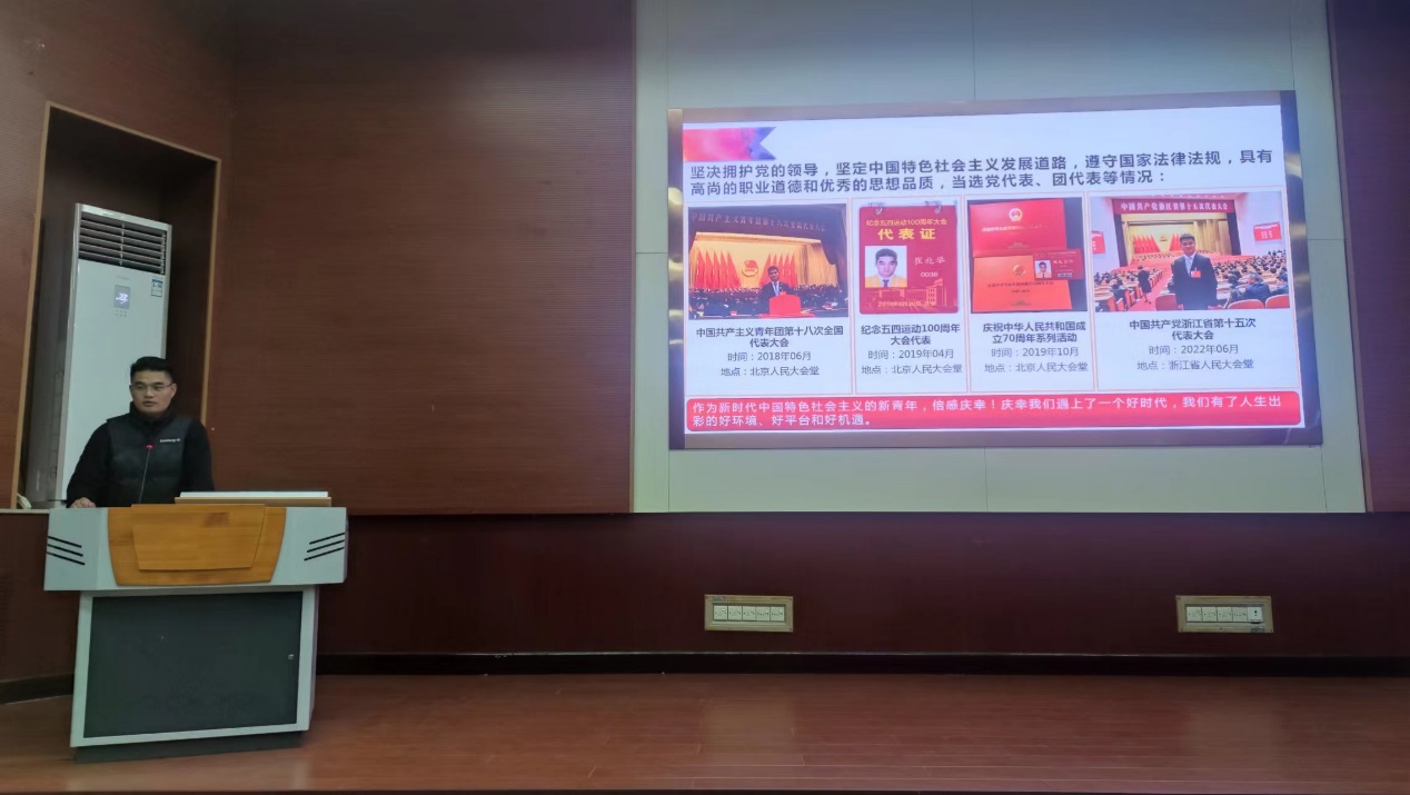 11月20日,太阳集团122cc有幸邀请到了世界技能大赛金牌得主,浙江建设技师公司团委副书记崔兆举为公司新生作专题报告。崔兆举书记以“争做一名有理想、敢担当、能吃苦、肯奋斗的新时代好青年”为主题,为大一新生带来了一场催人奋进、鼓舞人心的讲座。讲座由公司党总支副书记刘爱萍主持。