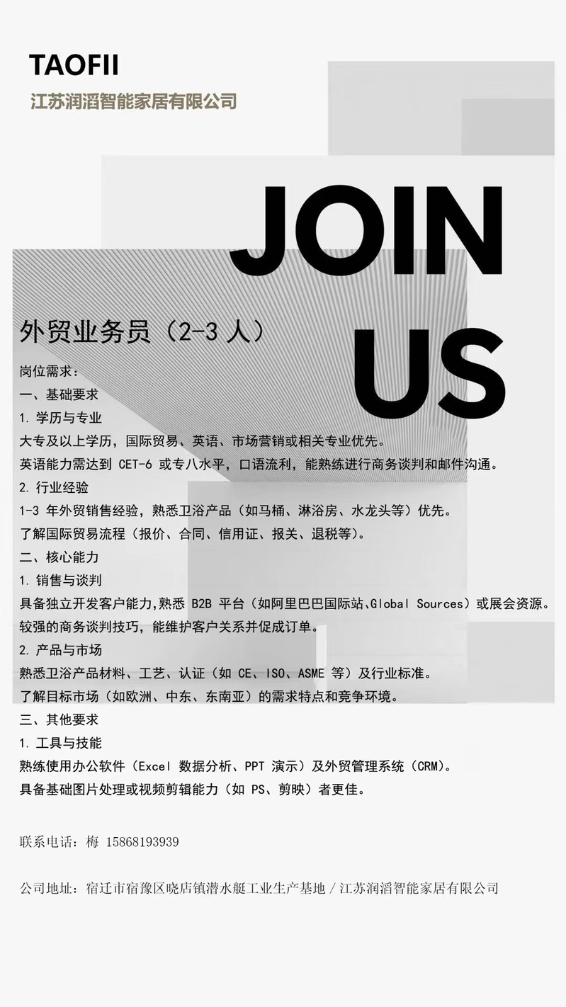 江苏润滔智能家居有限公司校园招聘
