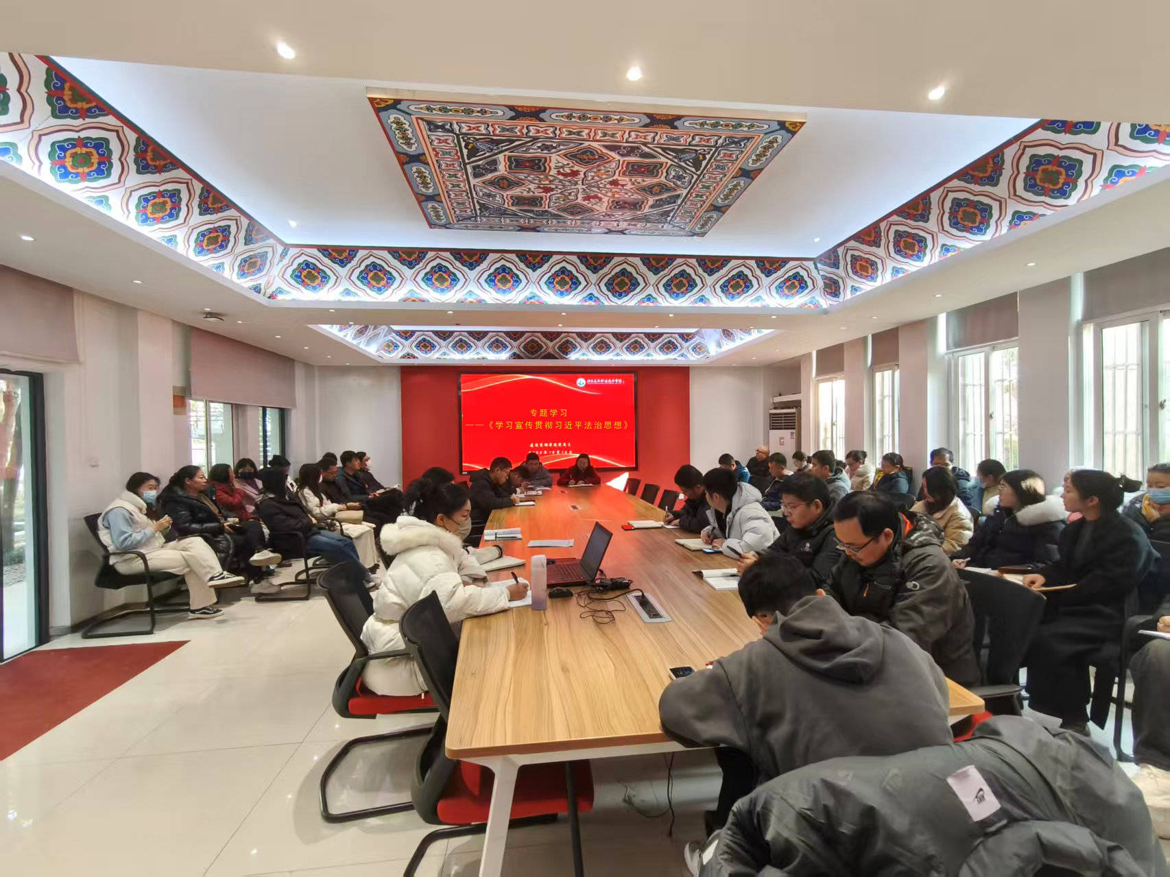 2025年12月2日是太阳集团122cc结合国家宪法日的主题“学习宣传贯彻习近平法治思想”,在公司会议室开展专题学习。公司党总支书记王正扬主讲,公司全体教职工参加会议。
